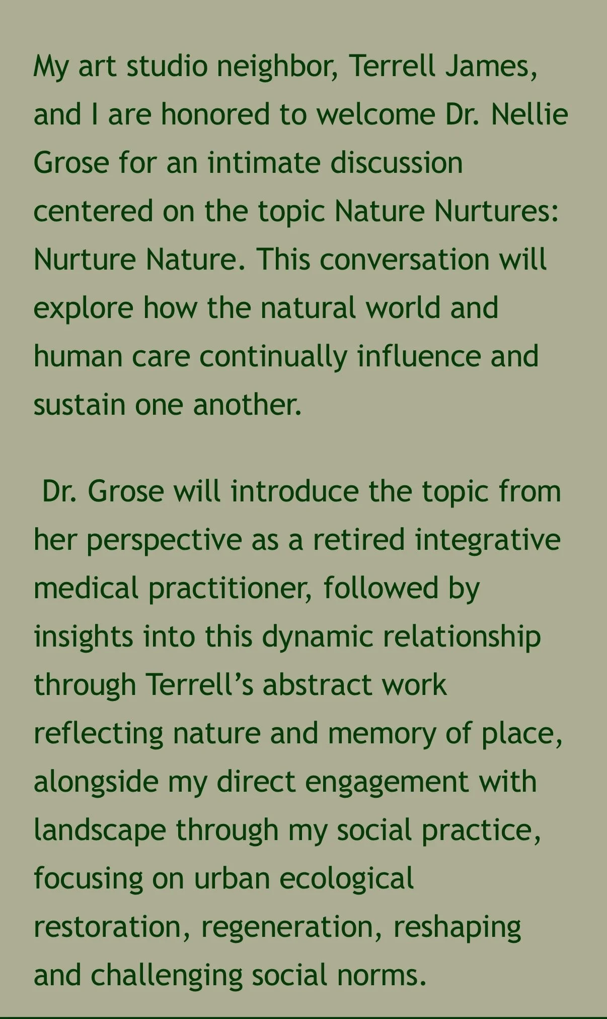 In a serendipitous encounter with an acquaintance from a prestigious art institution this weekend, I learned of their significant reorganization. I suggested that every institution embed an environmental ethos into their mission statement and then I thought - even Throughline. Throughline is a newly organized Collective that I am a member of.
