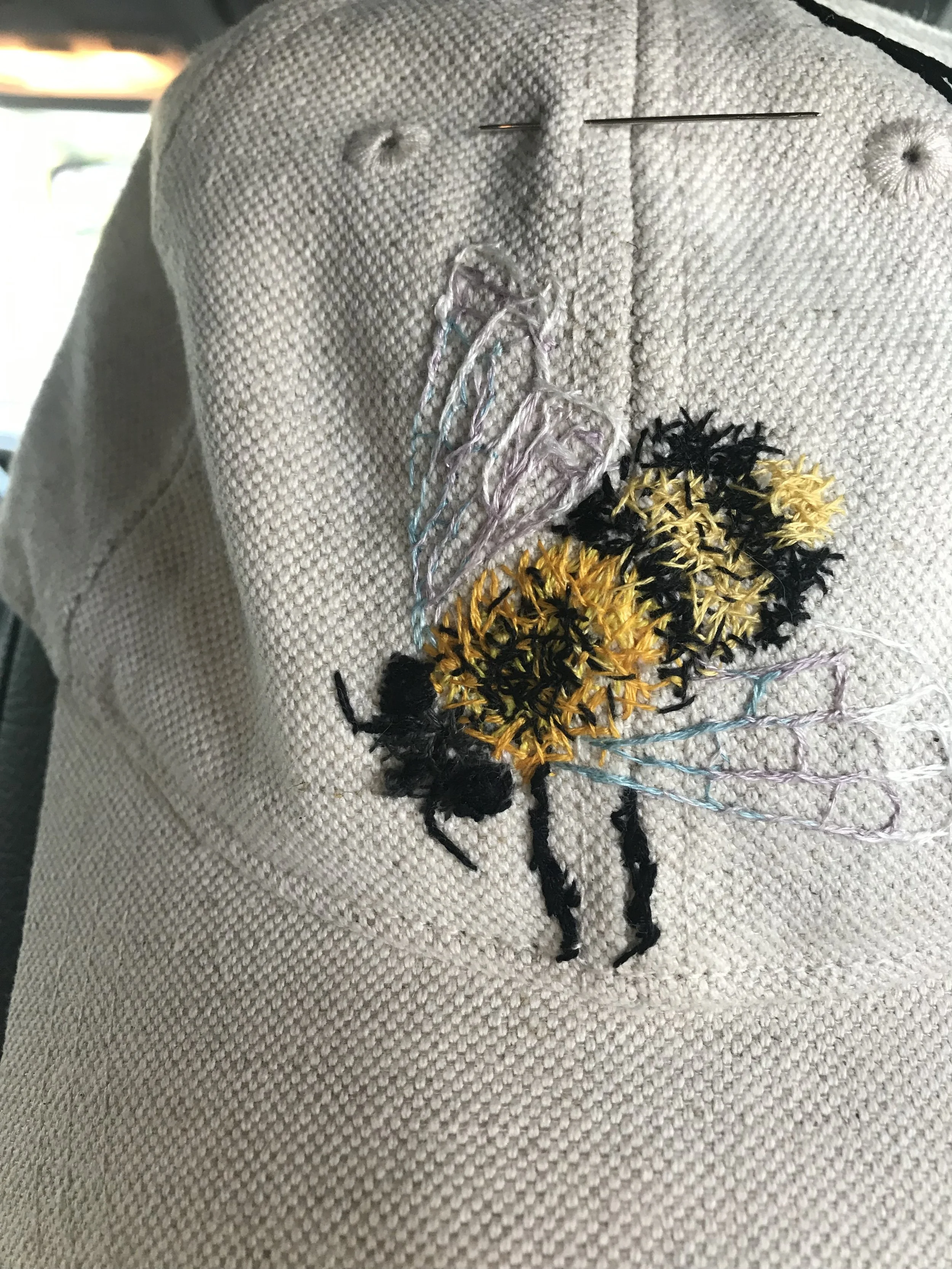 Another day of social distancing and not being able to get in my studio. Today's stitching, I added the first of several sweat bees. In reality, they are only about 1/4 ” long. They have beautiful metallic greens and blues. I am working to show more time and movement in my stitching.
